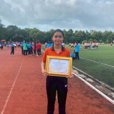 ในประเภทเดี่ยวหญิง ด.ญ.นริศราภรณ์ ธรรมไธสง ชั้น ม.3/7 แสดงฟอร์มโดดเด่น คว้าเหรียญทองประเภทวิ่ง 200 เมตร 15 ปีหญิง และเหรียญเงินประเภทวิ่ง 100 เมตร 15 ปีหญิง
