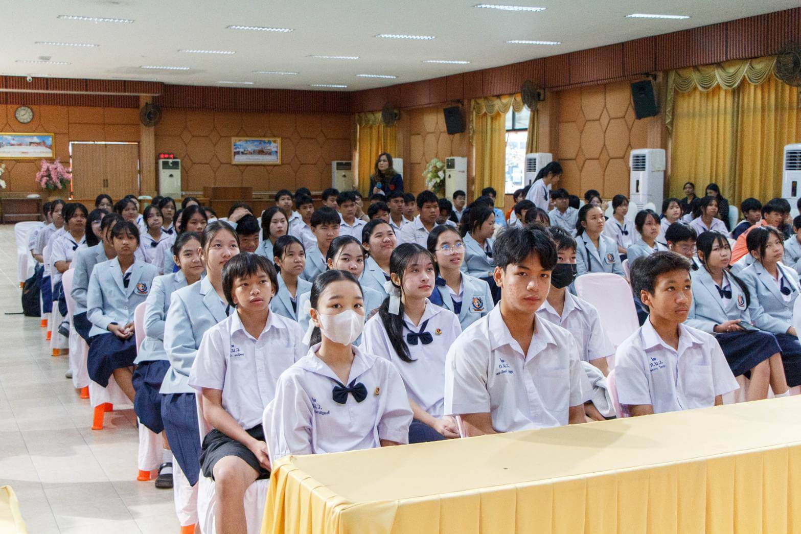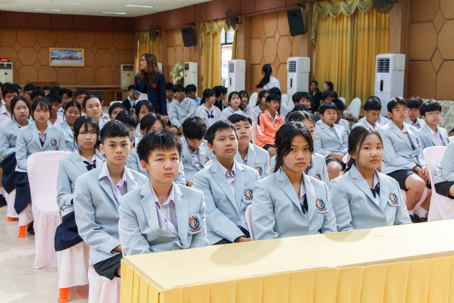 ในพิธีครั้งนี้ได้รับเกียรติจากนายภานุเดชา ภะวะพินิจ รองผู้อำนวยการกลุ่มบริหารวิชาการ และผู้ช่วยฯ อุเทน นันสมบัติ พร้อมด้วยคุณครูที่ปรึกษาและคุณครูกลุ่มสาระการเรียนรู้คณิตศาสตร์ร่วมแสดงความยินดีกับนักเรียนอย่างอบอุ่น