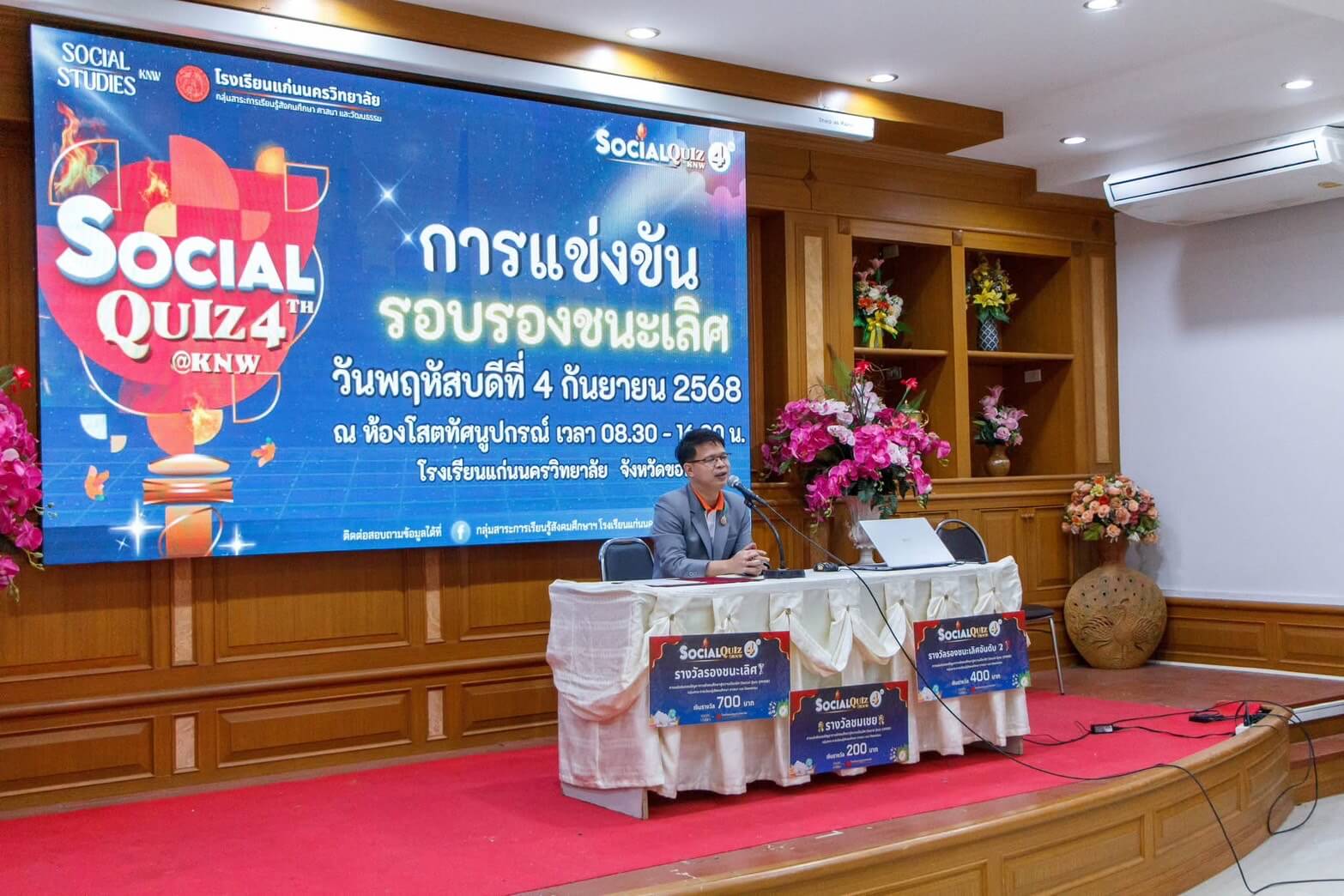 กิจกรรม Social Quiz@KNW เป็นการแข่งขันที่ส่งเสริมให้นักเรียนได้แสดงความรู้ความสามารถในวิชาสังคมศึกษา และเป็นการสร้างบรรยากาศการเรียนรู้ที่สนุกสนานและท้าทาย