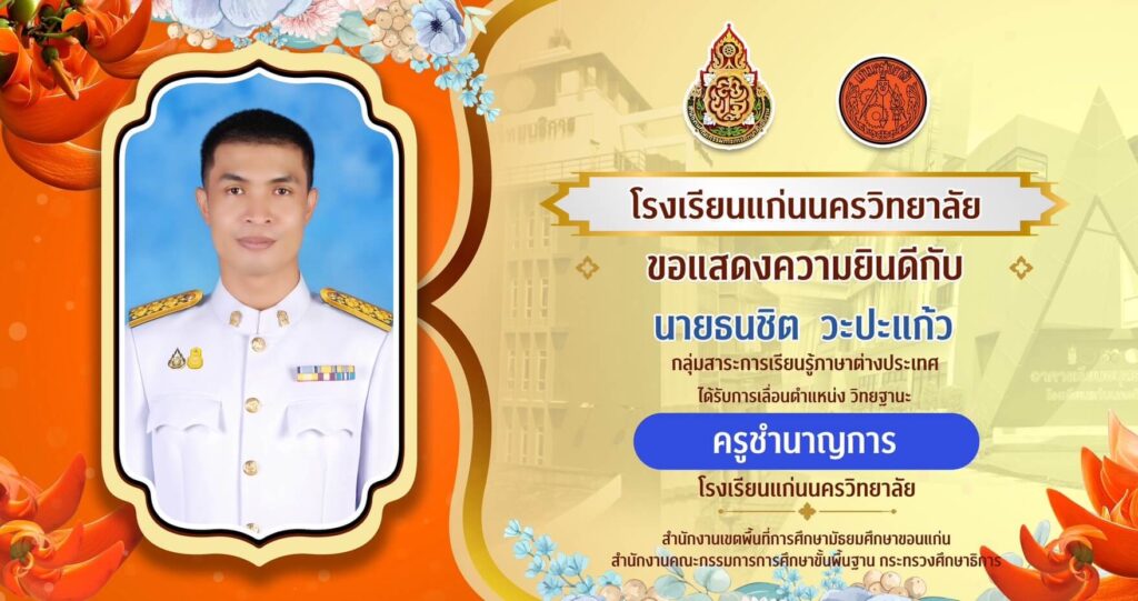 ขอแสดงความยินดีกับคุณครูที่ได้เลื่อนตำแหน่งวิทยฐานะชำนาญการพิเศษ 1 คน ชำนาญการ 5 คน และ คศ.1 จำนวน 1 คน