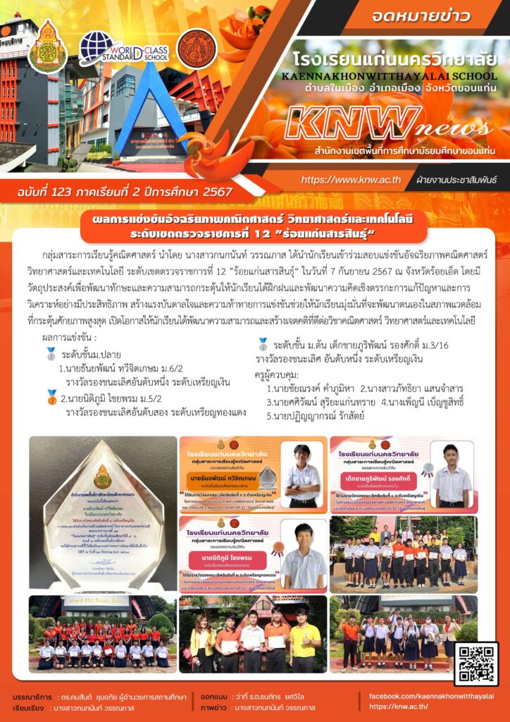 จดหมายข่าว ฉบับที่ 123 ผลการแข่งขันอัจฉริยภาพคณิตศาสตร์ วิทยาศาสตร์และเทคโนโลยี ระดับเขตตรวจราชการที่ 12 “ร้อยแก่นสารสินธุ์”