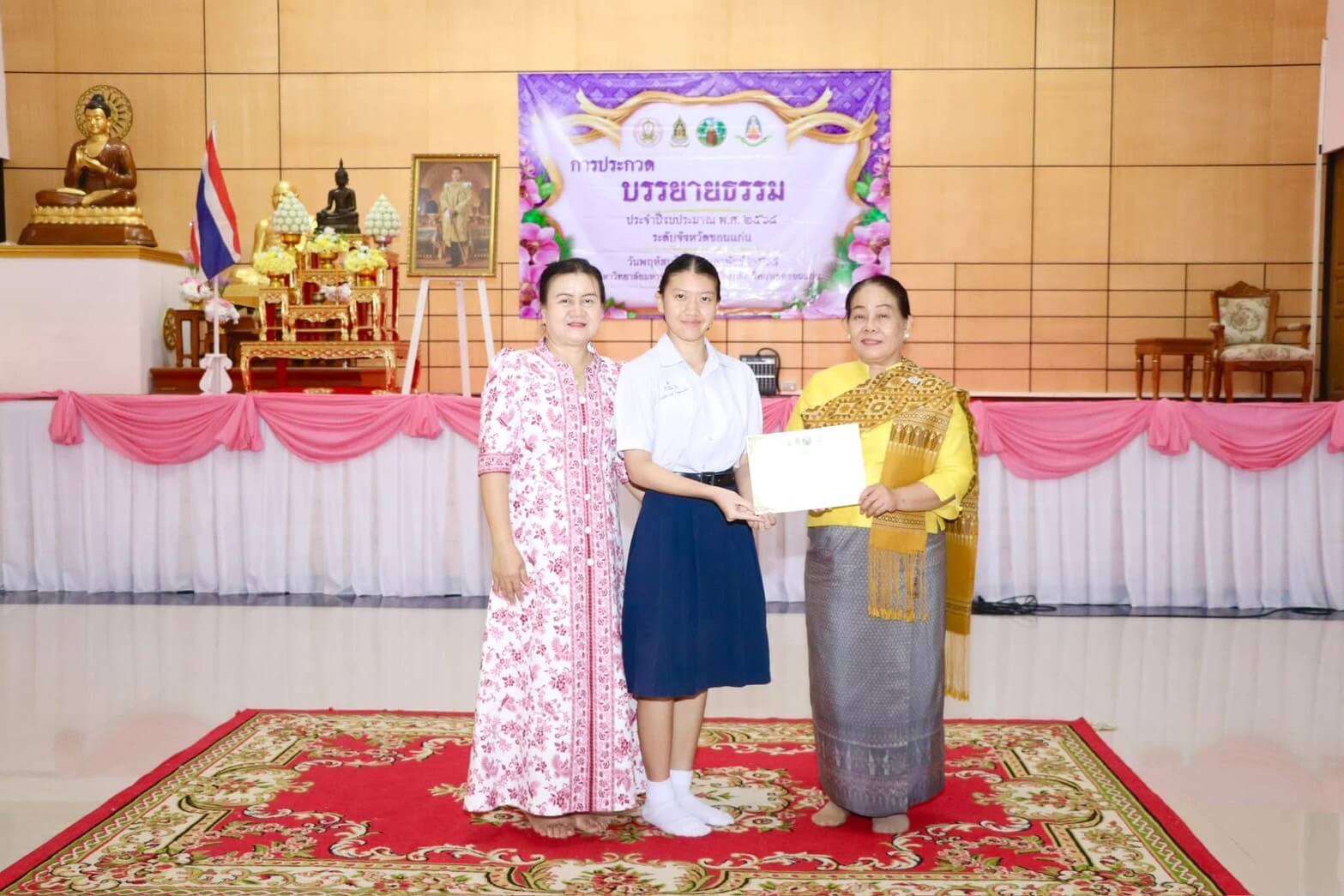 การประกวดบรรยายธรรมระดับมัธยมต้น ด.ญ.วนัสยากร น้อยมี คว้ารางวัลรองชนะเลิศอันดับ 2 และ ด.ญ.ศุภิสรา วาชัยยง ได้รับรางวัลชมเชย ส่วนระดับมัธยมปลาย น.ส.กฤติกานต์ โคตรแก้ว คว้ารางวัลชนะเลิศ และ น.ส.ณัฐธิดา ซ้ายบุรี ได้รับรางวัลชมเชย