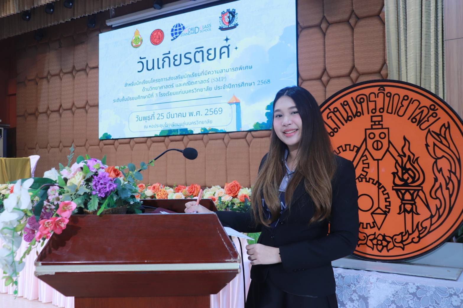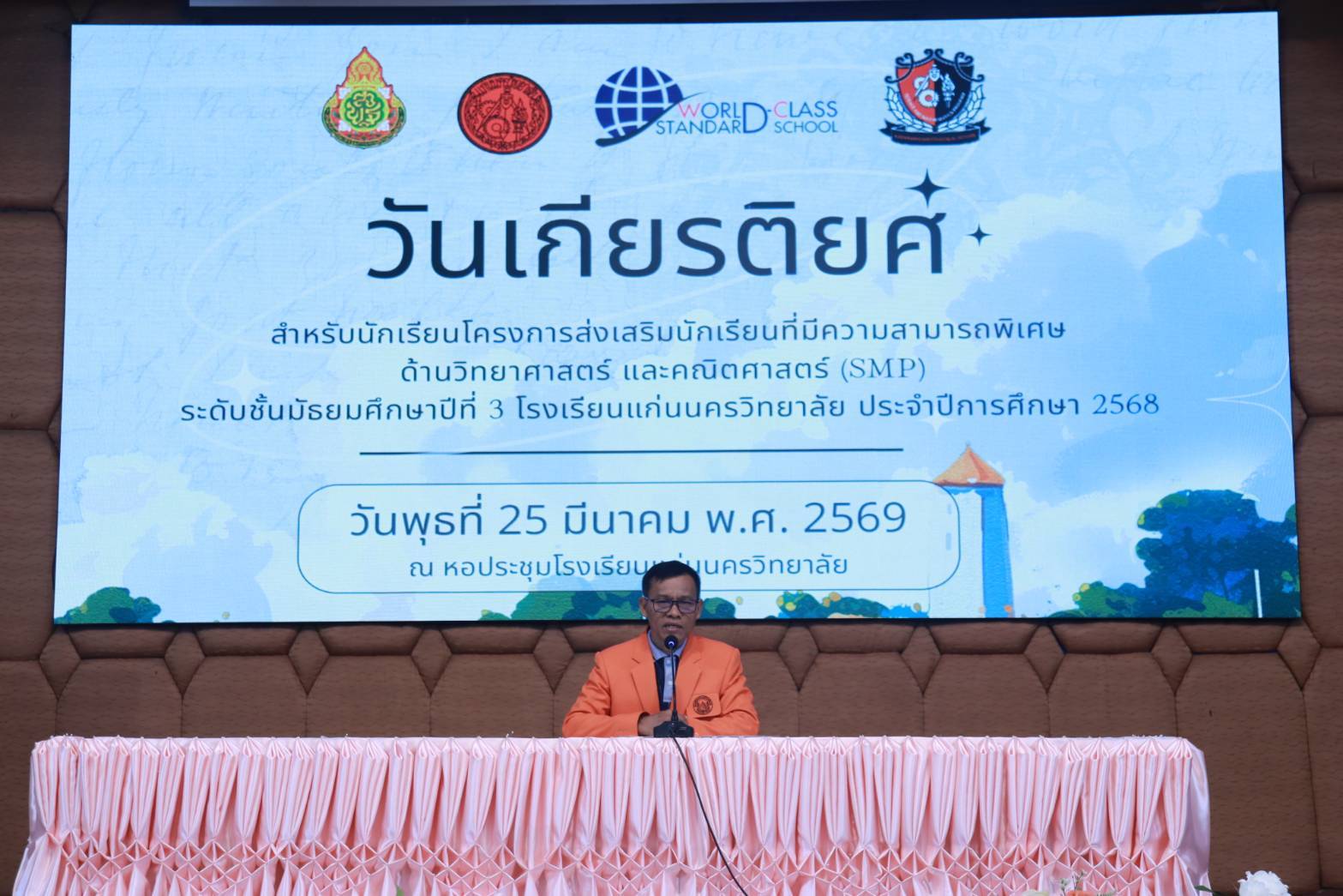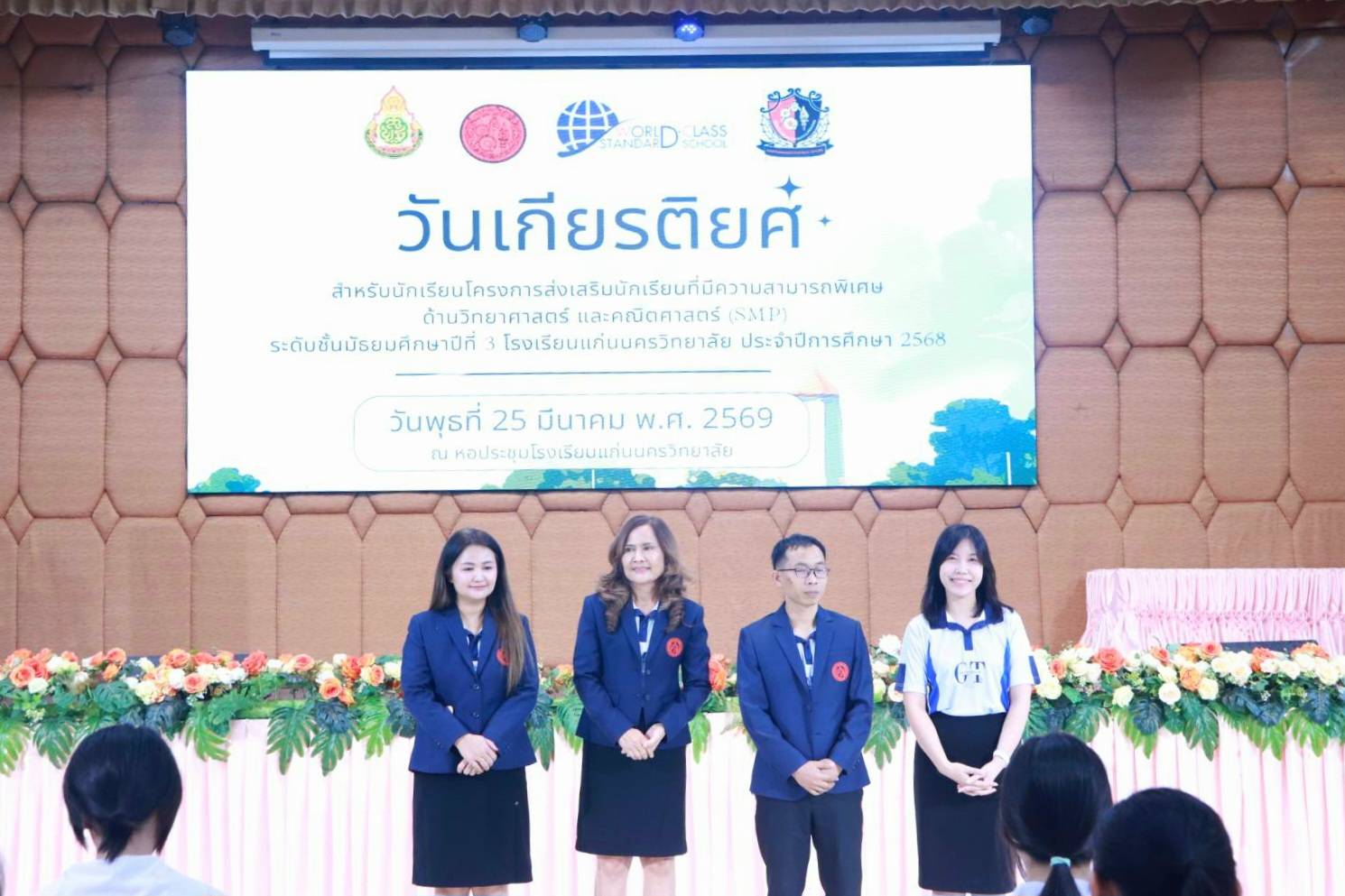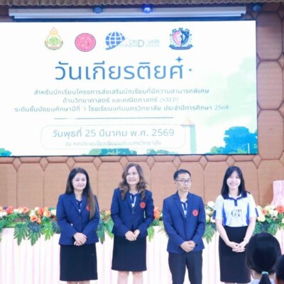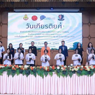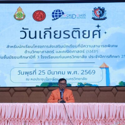 ขอนแก่น, 25 มีนาคม 2569 – บรรยากาศแห่งความตื้นตันและรอยยิ้มอบอวลไปทั่วหอประชุมโรงเรียนแก่นนครวิทยาลัย เมื่อกลุ่มสาระการเรียนรู้คณิตศาสตร์ จับมือภาคีเครือข่ายกลุ่มสาระฯ วิทยาศาสตร์ และภาษาไทย ร่วมกันเนรมิต “กิจกรรมวันเกียรติยศ” เพื่อเชิดชูเกียรติเหล่านักเรียนชั้นมัธยมศึกษาปีที่ 3 ในโครงการห้องเรียนพิเศษวิทยาศาสตร์และคณิตศาสตร์ (SMP)