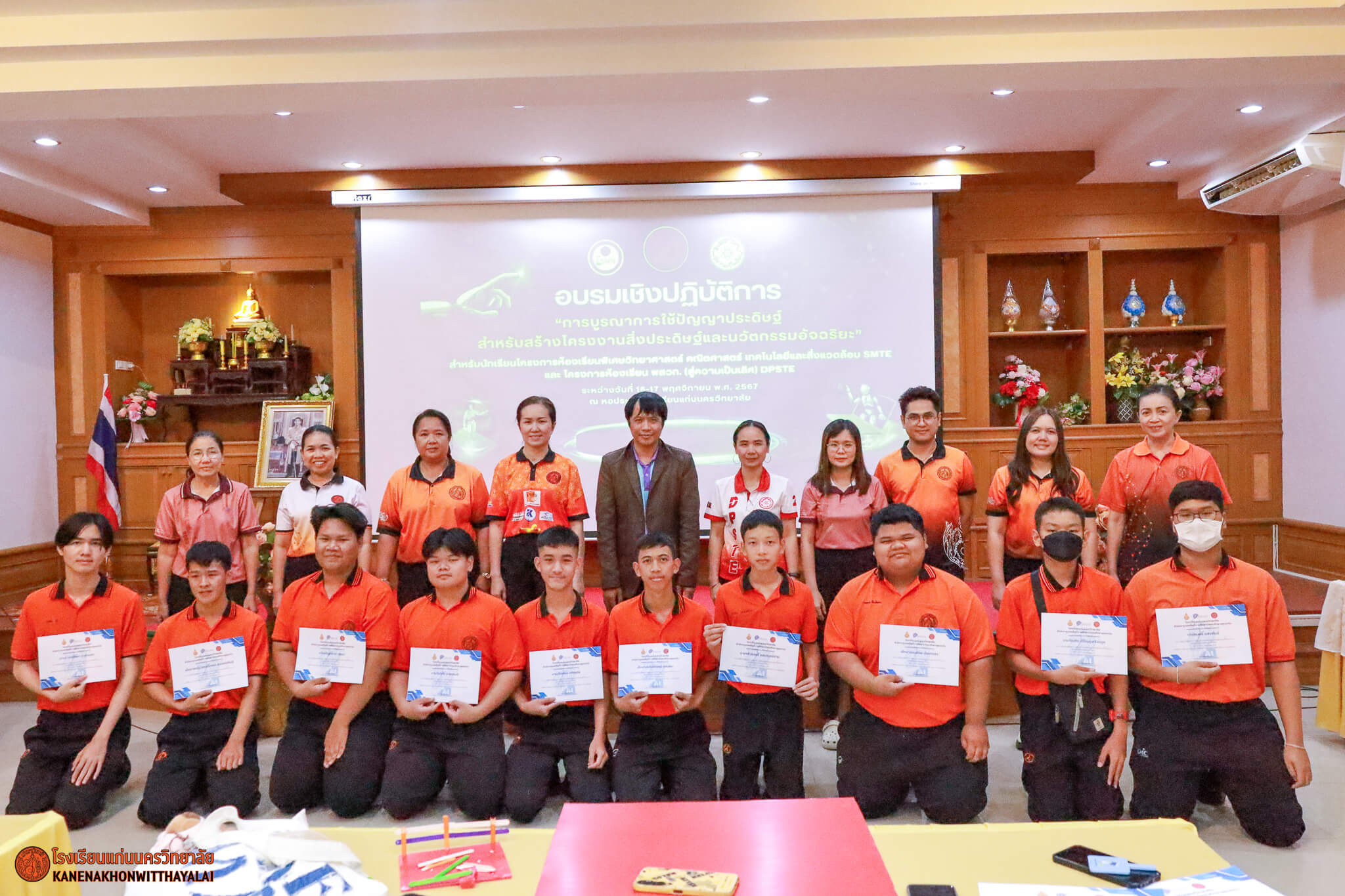 กลุ่มสาระการเรียนรู้วิทยาศาสตร์และเทคโนโลยี โรงเรียนแก่นนครวิทยาลัย ได้จัดการอบรมเชิงปฏิบัติการหลักสูตร “การบูรณาการใช้ปัญญาประดิษฐ์ สำหรับสร้างโครงงานสิ่งประดิษฐ์และนวัตกรรมอัจฉริยะ” ระหว่างวันที่ 16-17 พฤศจิกายน 2567 ณ หอประชุมโรงเรียนแก่นนครวิทยาลัย โดยมีนายภานุเดชา ภะวะพินิจ รองผู้อำนวยการกลุ่มบริหารวิชาการ เป็นประธานในพิธีเปิด