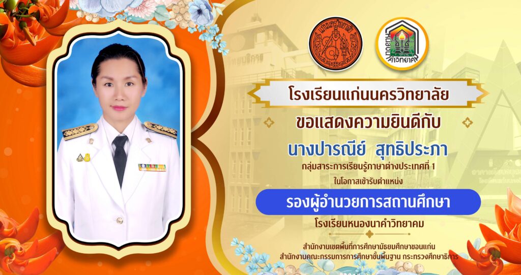 โรงเรียนแก่นนครวิทยาลัย ขอแสดงความยินดีกับ นางปารณีย์ สุทธิประภา ในโอกาสเข้ารับตำแหน่ง รองผู้อำนวยการสถานศึกษา
