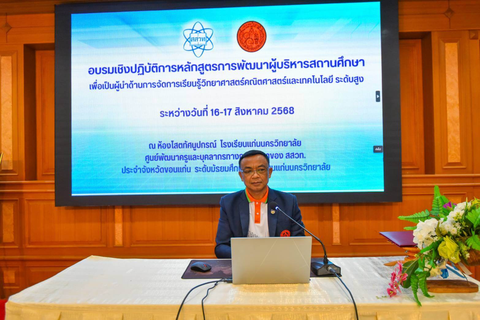 📢ระหว่างวันที่ 16-17 สิงหาคม 2568 ดร.คมสันต์ ชุมอภัย ผู้อำนวยการโรงเรียนแก่นนครวิทยาลัย ประธานศูนย์พัฒนาครูและบุคลากรทางการศึกษาของ สสวท. ประจำจังหวัดขอนแก่น ระดับมัธยมศึกษา ได้ให้เกียรติเป็นประธานในพิธีเปิด การอบรมเชิงปฏิบัติการ “หลักสูตรการพัฒนาผู้บริหารสถานศึกษาเพื่อเป็นผู้นำด้านการจัดการเรียนรู้วิทยาศาสตร์ คณิตศาสตร์ และเทคโนโลยี ระดับสูง” ณ ห้องโสตทัศนูปกรณ์ โรงเรียนแก่นนครวิทยาลัย