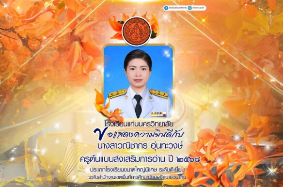 โรงเรียนแก่นนครวิทยาลัยขอแสดงความยินดีกับ นางสาวณิชาการ อุ่นทะวงษ์ กับรางวัลครูต้นแบบครูต้นแบบส่งเสริมการอ่าน ปี ๒๕๖๘