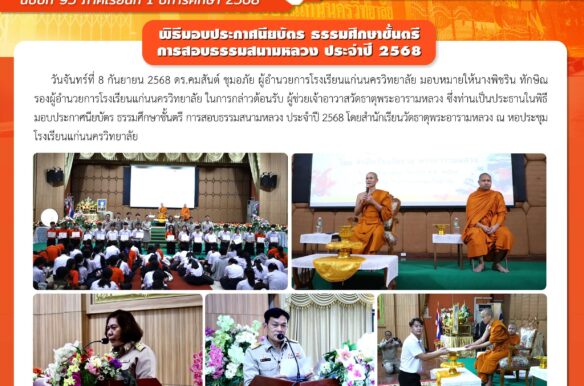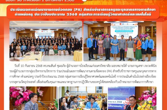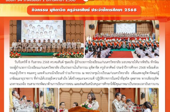 โรงเรียนแก่นนครวิทยาลัยได้รับเกียรติจากความสำเร็จของนักเรียนในการประกวดวาดภาพระบายสีเนื่องในวันคล้ายวันสถาปนาคณะศึกษาศาสตร์ มหาวิทยาลัยขอนแก่น และวันศิลป์พีระศรี ครั้งที่ 38 ประจำปีการศึกษา 2568 หรือที่รู้จักในชื่องาน “Ars longa” เด็กหญิงพาขวัญ วสุริย์ นักเรียนชั้นมัธยมศึกษาปีที่ 2 ของโรงเรียนแก่นนครวิทยาลัย สร้างชื่อเสียงให้กับสถานศึกษาด้วยการคว้ารางวัลชนะเลิศระดับชั้นมัธยมศึกษาตอนต้นในการประกวดครั้งนี้ ความสำเร็จดังกล่าวเป็นผลมาจากการดูแลและฝึกสอนอย่างใกล้ชิดจากทีมครูผู้สอน ประกอบด้วย คุณครูชานนทร์ มุ่งเขตกลาง, คุณครูทัศน์ไท พลมณี และคุณครูทัศนศิลป์ทุกท่านของโรงเรียนแก่นนครวิทยาลัย ที่ได้ให้การสนับสนุนและพัฒนาศักยภาพด้านศิลปะของนักเรียนอย่างต่อเนื่อง รางวัลนี้สะท้อนถึงมาตรฐานการศึกษาด้านศิลปะและความมุ่งมั่นในการพัฒนาทักษะของนักเรียนโรงเรียนแก่นนครวิทยาลัย ซึ่งเป็นอีกหนึ่งความภาคภูมิใจของสถานศึกษาในปีการศึกษานี้ แหล่งที่มา: โรงเรียนแก่นนครวิทยาลัย