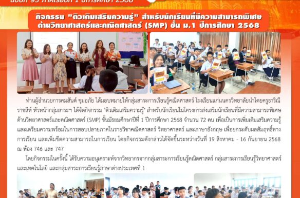 นักเรียนโรงเรียนแก่นนครวิทยาลัยสร้างผลงานเด่นในการแข่งขันกีฬาแบดมินตันคัดตัวแทนจังหวัดขอนแก่น เพื่อเข้าร่วมการแข่งขันกีฬานักเรียนนักศึกษาแห่งชาติ ประจำปี 2568 โดยคว้าเหรียญรางวัลไปทั้งหมด 13 เหรียญ ในประเภทนักเรียน ทีมชายคู่ที่ประกอบด้วย กาจบดินทร์ การสะอาด ม.6/7 และ ภัทรพล สิริสุขสง่าพงศ์ ม.4/10 คว้าเหรียญทองแดงได้สำเร็จ ขณะที่คู่ที่สองคือ รัฐศาสตร์ ชนะสิมา และ ยุติวิชญ์ เฮ้ามาชัย ทั้งคู่จากชั้น ม.4/20 ได้เหรียญเงิน สำหรับประเภทชายเดี่ยว ยุติวิชญ์ เฮ้ามาชัย ม.4/20 และ ภูวิศะ นารอง ม.4/20 แต่ละคนคว้าเหรียญทองแดง ในส่วนของนักเรียนหญิง พรชนก เวชวิรุฬห์ ม.4/20 โชว์ฟอร์มแกร่งคว้าเหรียญเงินประเภทเดี่ยว และสร้างความสำเร็จต่อเนื่องด้วยการได้เหรียญทองแดงประเภทคู่หญิงร่วมกับ ธัญทิพย์ บุญยอด ม.1/5 นอกจากนี้ยังมีจิรัชญา แจ้งพรมมา ม.6/9 และ ปภาดา ปัญญาวิภาส […]