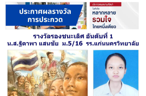 นักเรียนแก่นนครวิทยาลัยคว้ารางวัลรองชนะเลิศอันดับ 1 ในการประกวดภาพวาด ‘หลากหลาย รวมใจ ไทยหนึ่งเดียว’