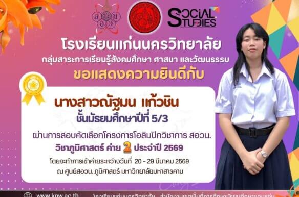 นักเรียนแก่นนครวิทยาลัยผ่านการคัดเลือกโอลิมปิกวิชาการสาขาภูมิศาสตร์ เข้าค่าย 2