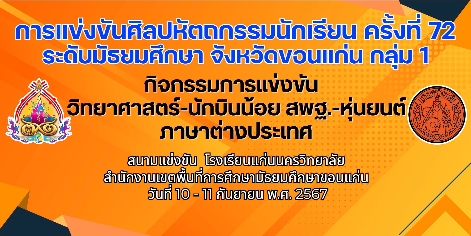 สำหรับโรงเรียนแก่นนครวิทยาลัย เป็นเจ้าภาพสนามการแข่งขัน วิทยาศาสตร์ นักบินน้อย สพฐ.-หุ่นยนต์ ภาษาต่างประเทศ