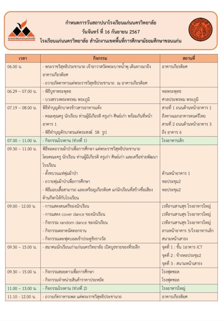 16 กันยายน วันสถาปนาโรงเรียนแก่นนครวิทยาลัย #2