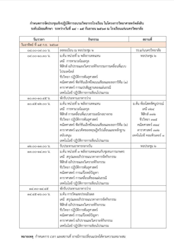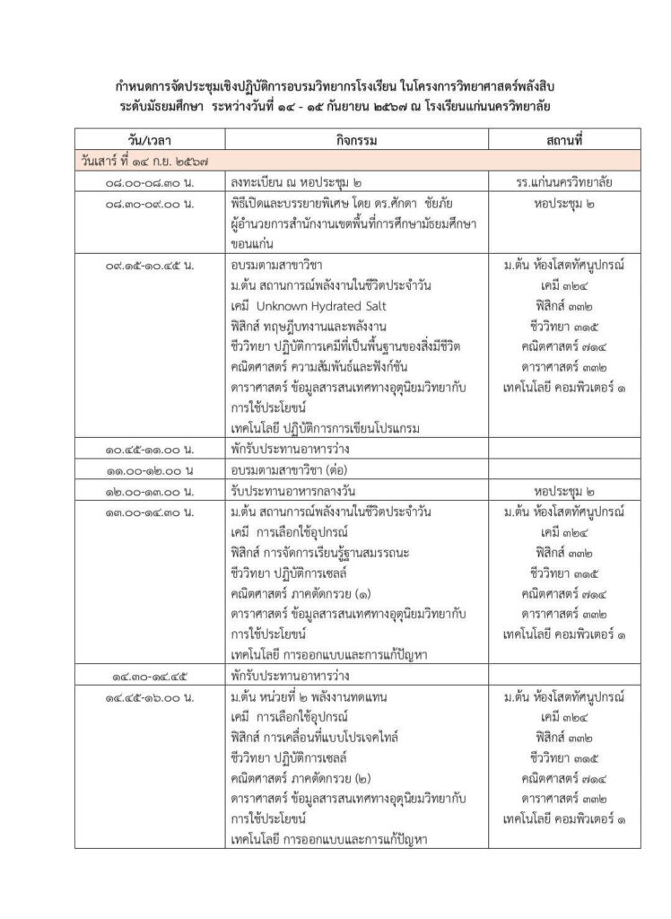 อบรมครู “โครงการวิทยาศาสตร์พลังสิบ”