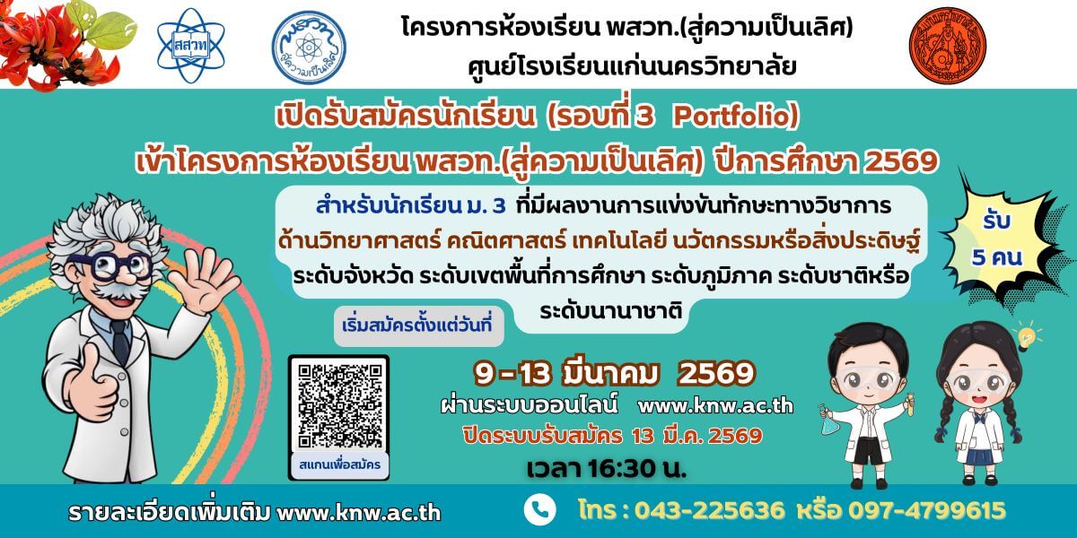 การมอบตัวนักเรียนเข้าเรียน ม.4 ปีการศึกษา 2569 ประเภทห้องเรียนพิเศษ (เพิ่มเติมครั้งที่ 2)